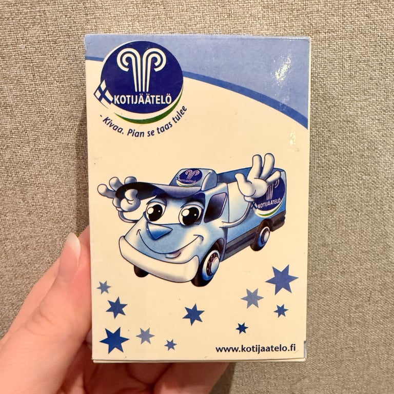 Kotijäätelö (fin. "home ice cream") was a Finnish ice cream truck company that ceased operations in 2013. It was a subsidiary of the Danish Hjelm-IS Europa, owned by Nestlé, and they are still active in the other Nordic countries. Their slogan translates to "– Fun. Soon it comes again"